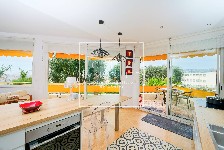 Baigné de lumière grâce à ses larges baies vitrées, l’appartement s’ouvre sur un spacieux balcon-terrasse qui entoure le bien et dévoile une vue panoramique imprenable sur la ville et la mer. Cet extérieur généreux permet de profiter pleinement du soleil tout au long de la journée, tout en offrant également des espaces plus ombragés au cœur de la verdure.