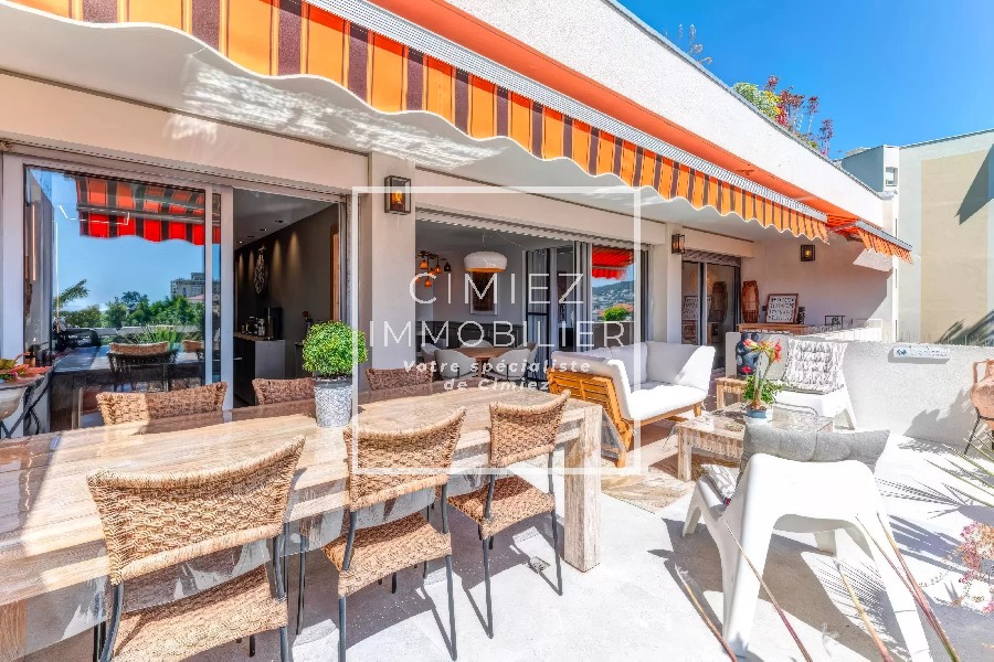 NICE CIMIEZ : Situé dans un emplacement calme du quartier et dans une copropriété luxueuse avec gardien proche de Stanislas, grand appartement de 3 pièces de 95,11 m² an avant-dernier étage avec magnifique terrasse exposée Sud et vue dégagée.